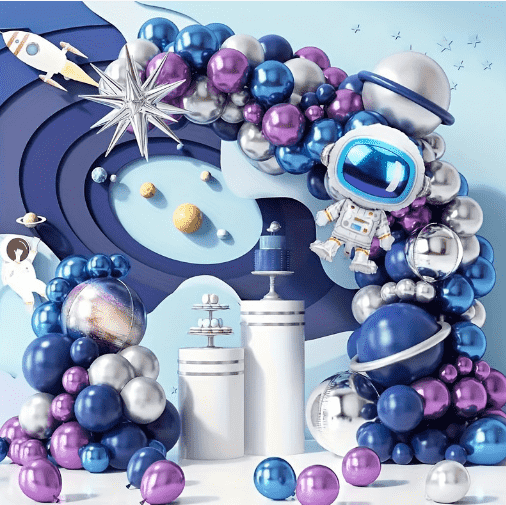 အာကာသယာဉ်မှူး သတ္တုပါးဖောင်း ပန်းကုံးအစုံသည် ပါတီနောက်ခံနံရံ၊ စျေးဝယ်စင်တာဝင်ပေါက်အပြင်အဆင်အတွက် သင့်တော်သော အကြီးစားလှုပ်ရှားမှုများအတွက် မျက်စိကျစေမည့် လက်နက်ဖြစ်သည်။ အခြေခံအဖြစ် မီးပုံးပျံကွင်းဆက်ဖြင့်၊ အာကာသယာဉ်မှူးပုံနှိပ်ခြင်းမီးပုံးပျံ၊ ဒုံးပျံသတ္တုပြား၊ ရောင်စုံဂြိုလ်ပူဖောင်းနှင့် matte latex balloon တို့သည် ရောနှောကာ ပုံသေဖြစ်နေသည်။ ပန်းကုံးဝတ်စုံကို နံရံ သို့မဟုတ် တံခါးဘောင်ပေါ်တွင် တိုက်ရိုက်ချိတ်ဆွဲထားနိုင်သည်။ နက်နဲသောကြယ်ရောင်ကောင်းကင်အရောင်စနစ်သည် တောက်ပသောသတ္တုတောက်ပြောင်မှုဖြင့် လိုက်ဖက်ပြီး နစ်မြုပ်နေသောအာကာသလေထုကိုချက်ချင်းဖြည့်ပေးပြီး လှုပ်ရှားမှုဆိုက်၏အမြင်အာရုံဖြစ်လာသည်။