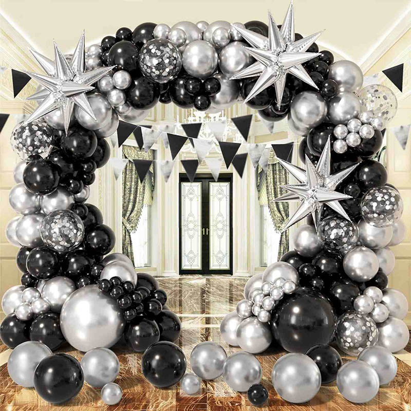 အနက်ရောင်နှင့်ငွေပူဖောင်းများ Girlland ပစ္စည်းများ |