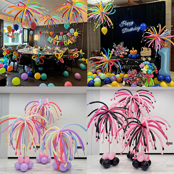 ပုံသဏ် des ာန်ဒီဇိုင်းအတွက်။ ညကောင်းကင်ယံတွင်ပေါက်ကွဲသည့်မီးရှူးမီးပန်းများမှလှုံ့ဆော်မှုဖြစ်သည်။ သူတို့ဟာတောက်ပနေပြီး dynamic and on-catching ပါပဲ။ သူတို့ကကွဲလွဲသည့်အခါမီးရှူးမီးပန်းများ၏ပုံသဏ် ults ာန်ကို perfectly ုံ ရှည်လျားသောပူဖောင်း strips တွေကစင်တာကနေဆန့်နှင့်ပြန့်နှံ့။ သေးငယ်တဲ့ပူဖောင်းများကိုအစွန်းမှာထည့်သွင်းထားသည်။ သူတို့ကမီးရှူးမီးပန်းများပေါက်ကွဲခြင်းမှမီးပွားများနှင့်တူသည်။ တစ်သက်တာနှင့်ကွက်ကွက်ကွင်းကွင်း။ ပါတီမျက်နှာကျက်တွင်သူတို့ကိုဆွဲထားပါ။ သို့မဟုတ်သူတို့ကိုမြေ၌အလှဆင်သောတိုင်များကဲ့သို့၎င်း, သူတို့ဟာမီးရှူးမီးပန်းများကိုအလျင်အမြန် 0 င်ရောက်ခြင်း၏လှပသောအမြင်အာရုံသက်ရောက်မှုကိုဖန်တီးကြသည်။ ပါတီ guests ည့်သည်များသည်မီးရှူးမီးပန်းများပြသသလိုခံစားရလိမ့်မည်။ ပျော်ရွှင်ဖွယ်ကောင်းသောလေထုထဲတွင်နှစ်မြှုပ်ခြင်း။ ဒါ့အပြင်အောက်ခြေရှိပူဖောင်းအခြေစိုက်စခန်းသည်ကောင်းမွန်စွာဒီဇိုင်းပြုလုပ်ထားသည်။ ကွဲပြားခြားနားသောအရောင်ကိုက်ညီနှင့်အတူမီးရှူးဆာပုံသဏ် into ာန်ပူဖောင်းများ။ သူတို့၏အခြေစိုက်စခန်းများသည်ကိုက်ညီသောပူဖောင်းပေါင်းစပ်မှုများနှင့်ကိုက်ညီသည်။ အခြေစိုက်စခန်းသည်ပူဖောင်းကိုတည်ငြိမ်စေသည်။ ၎င်းသည်အလှဆင်အလှဆင်မှုကိုပိုမိုကောင်းမွန်စေသည်။ မီးတင်ထားသောပုံသဏ် bool ာတော်တစ်ခုလုံးကိုထိပ်မှအောက်သို့ပေါင်းစပ်ထားသည်။ ပါတီမှာလှပသောမျက်မှောက်ဖြစ်လာသည်။