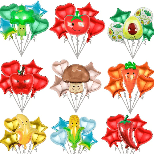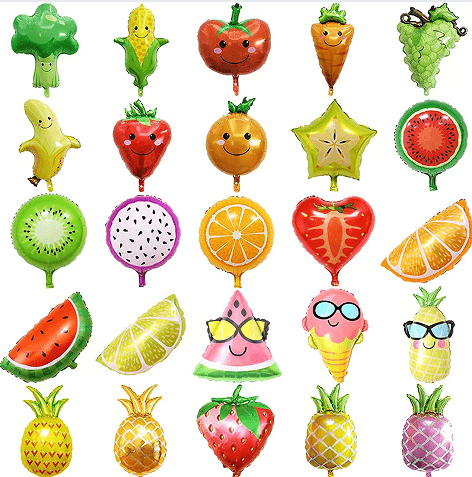 သစ်သီးနှင့် ဟင်းသီးဟင်းရွက် ပူဖောင်းများသည် မွေးနေ့ပါတီများ၊ နှစ်ပတ်လည်အလှဆင်မှုများ၊ မင်္ဂလာဆောင်အလှဆင်မှုများ၊ cosplay ပါတီများ၊ ကလေးပါတီစုံတွဲများ၊ မိန်းကလေးပါတီများနှင့် သစ်သီးပါတီအလှဆင်ခြင်းများအတွက် ပြီးပြည့်စုံပါသည်။ ဤပူဖောင်းများသည် အလှဆင်ရန်အတွက် ပြီးပြည့်စုံရုံသာမက လှပသောဓာတ်ပုံ ကျားကွက်များအဖြစ်လည်း ဆောင်ရွက်နိုင်ပါသည်။ ဤအသီးအနှံများနှင့် ဟင်းသီးဟင်းရွက်ပူဖောင်းများဖြင့် မွေးနေ့တွင် မိန်းကလေးများ၏ ချစ်စရာပုံများကို ရိုက်ယူနိုင်သည်ဟု စိတ်ကူးကြည့်ပါ။ ဒီဓာတ်ပုံတွေရဲ့ အမှတ်တရတွေကို နောင်နှစ်တွေမှာ မြတ်နိုးလာလိမ့်မယ်။ သစ်သီးဝလံများနှင့် ဟင်းသီးဟင်းရွက်များ သတ္တုပါးဖောင်းများကို အများအားဖြင့် အလူမီနီယမ်ဖလင်ဖြင့် ပြုလုပ်ထားသောကြောင့် သာမန်စေးထစ်ပူဖောင်းများထက် ပိုမိုခိုင်ခံ့ကာ ကွဲရလွယ်ကူကာ လေဝင်လေထွက်ကောင်းအောင် ထိန်းသိမ်းထားနိုင်သည့်အပြင် ဖောင်းကားနေသည့်အခြေအနေကို ကြာရှည်စွာ ထိန်းသိမ်းထားနိုင်သည်။ ဖရဲသီးဝိုင်း၊ စတော်ဘယ်ရီ၊ ကွေးကောက်ငှက်ပျောသီး၊ ဘဲဥပုံလိမ္မော်၊ ကီဝီသီး၊ မုန်လာဥနီ၊ ပြောင်းဖူး၊ ဘရိုကိုလီ နှင့် အခြားသော ဟင်းသီးဟင်းရွက်ပုံသဏ္ဍာန်များကဲ့သို့သော သစ်သီးများနှင့် ဟင်းသီးဟင်းရွက်များ၏ ပုံသဏ္ဍာန်အမျိုးမျိုးရှိသည်။
