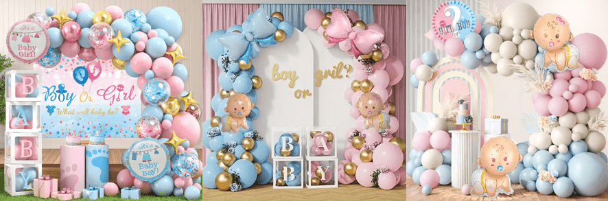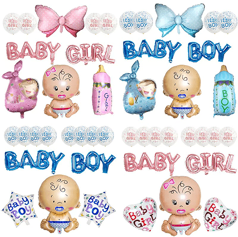 ကျား, မရေးရာသတ္တုပါးပူဖောင်းကိုသတ္တုရိုင်းရုပ်ရှင်ဖြင့်ပြုလုပ်ထားသော Metallic အလူမီနီယမ်ရုပ်ရှင်ဖြင့်ပြုလုပ်ထားသော, "ကောင်လေး" နှင့် "မိန်းကလေး" အက္ခရာများနှင့်အတူတိုက်ရိုက်ပုံနှိပ်ပြီးပါပြီ, မင်းသမီးပိတ်ကျဲစကတ်စကတ်လေးစင်းပုံစံနှင့်ကိုက်ညီခြင်း, ၎င်းသည်အကြီးစားအခမ်းအနားလှုပ်ရှားမှုများ၏အဓိကထုတ်ကုန်ဖြစ်သည်။