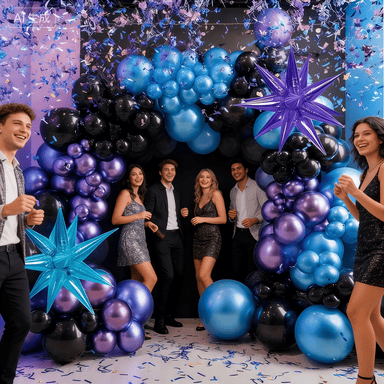 ဤသည်မှာ မွေးနေ့ပွဲကျင်းပရန် နောက်ထပ်ရွေးချယ်မှုတစ်ခုဖြစ်သည်။ နဖူးစည်းများ၊ နောက်ခံပုံများနှင့် မော်ဒယ်ကိတ်မုန့်များကဲ့သို့သော သင့်ပူဖောင်းအထုပ်တွင် မွေးနေ့ပုံစံအလှဆင်မှုအချို့ကို ထည့်ပါ။ သင်၏ပါတီအငွေ့အသက်ကို နောက်တစ်ဆင့်သို့တက်လှမ်းပါ။