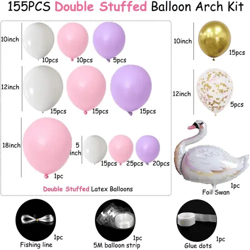 Swan balloon arch အတွက် မတူညီသော ဆက်စပ်ပစ္စည်းများကို ပေါင်းထည့်ပါမည်။ အစက်ကော်၊ မီးပုံးပျံအမြှောင်းနှင့် ဖဲကြိုးများ ပါဝင်သည်။ ထို့အပြင်၊ ကျွန်ုပ်တို့သည် သင်တောင်းဆိုထားသည့်အတိုင်း အခြားဆက်စပ်ပစ္စည်းများကိုလည်း ထည့်နိုင်သည်။