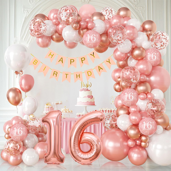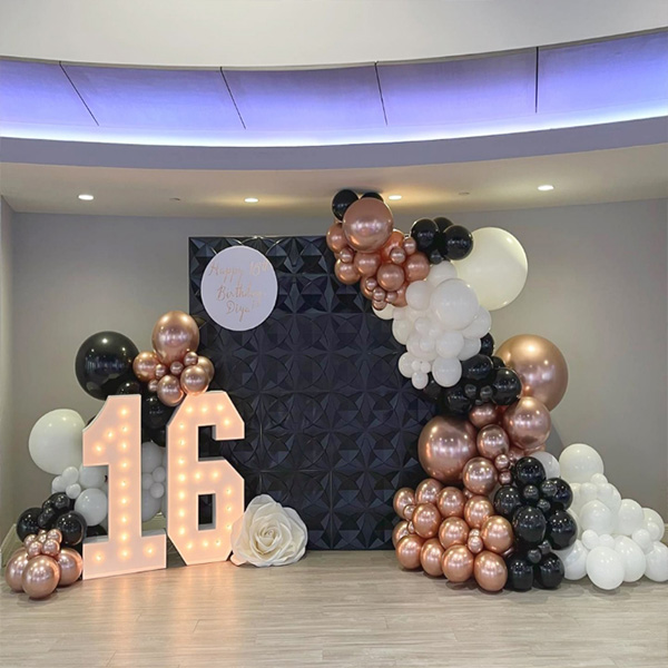 Sweet 16 balloon arch ဤပက်ကေ့ခ်ျတွင် အစေးပူဖောင်းများ၊ သတ္တုပြားပူဖောင်းများ၊ မွေးနေ့အမှတ်အသားများ၊ ကော်ကွက်များ၊ ဖဲကြိုးများ စသည်တို့ ပါဝင်ပါသည်။ အထူးလိုအပ်ချက်များရှိပါက၊ သင့်လိုအပ်ချက်အရ အထုပ်အတွင်း မီးပုံးပျံအရွယ်အစား၊ အရေအတွက်၊ အရောင်စသည်တို့ကို စိတ်ကြိုက်ပြင်ဆင်နိုင်ပါသည်။၎။